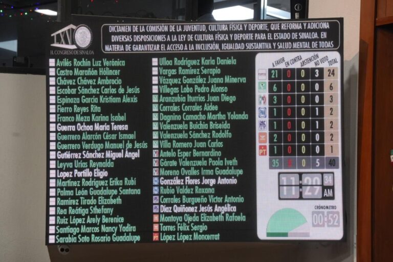 Culiacán, Sinaloa. A 27 de noviembre de 2025.- Diputadas y diputados de la 65 Legislatura aprobaron este jueves por unanimidad reformas y adiciones diversas a la Ley de Cultura Física y Deporte para el Estado de Sinaloa, en materia de garantizar el acceso a la inclusión igualdad sustantiva y salud mental de todas las y los deportistas.