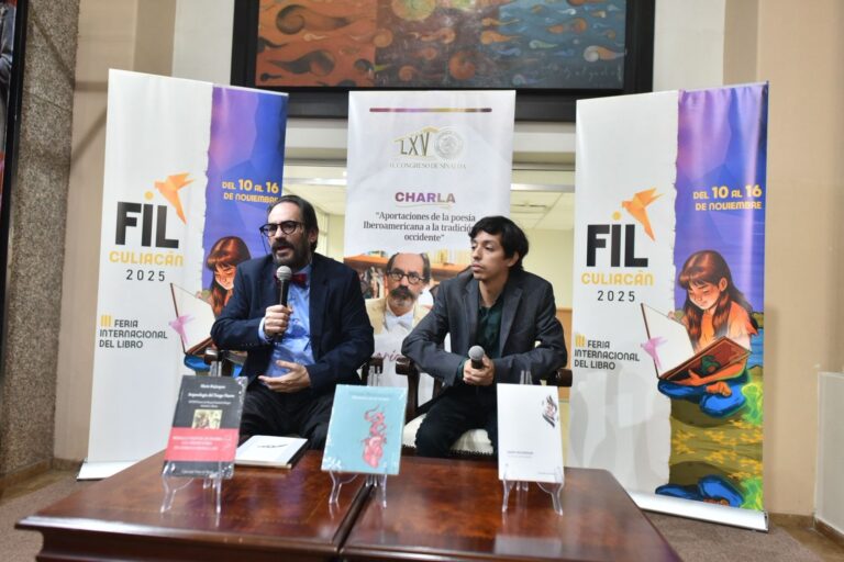 Culiacán, Sinaloa. A 12 de noviembre de 2025.- La poesía se siente desde la infancia, cuando se escucha el canto de la madre, y un poema logra impregnarse en una persona después de haber sido leído en un libro, expresó el poeta Mario Bojórquez, al ofrecer la charla “Aportaciones de la Poesía Iberoamericana a la Tradición de Occidente”.